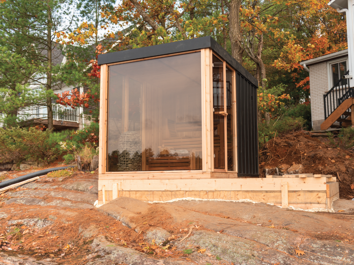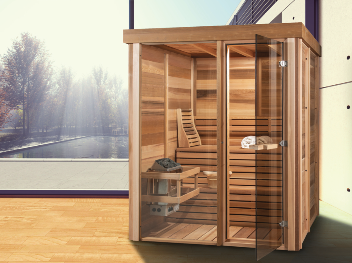 日本において、屋外サウナはバレルサウナが主流となっています。そんな中、当社のサウナは金属とウェスタンレッドシダーが調和した、これまでに例を見ないモダンなデザインでこの度日本初上陸となります。サウナ室内の熱を逃してしまうため、ガラスはサウナの天敵とも言われていますが、当社の屋外サウナには2重層の強化ガラスが採用されています。ガラスであることで、眺望を楽しみながらサウナに入れるだけでなく、デザイン性の高い屋外サウナとなっています。