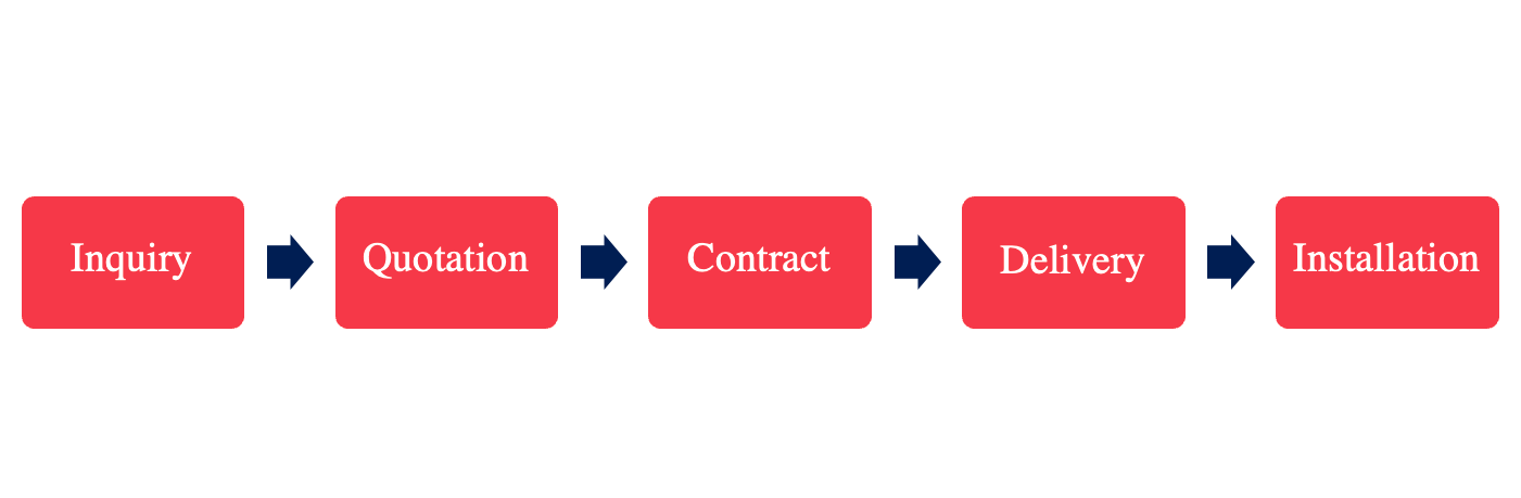For your application of contract or purchase, you will need to sign the “Quotation and Contract Document,” which will be provided as a PDF. At the time of contract we will confirm the payment method and require an initial payment of 50% of the total amount as a commencement fee. Upon confirmation of the transfer, your order will be finalized.