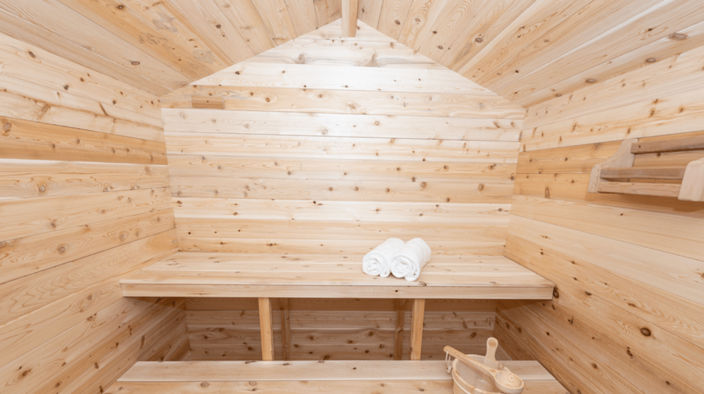 ロッキーは、明るい色調と緻密な木目を持つイースタンホワイトシダーを使用し、職人によって手作業で精巧に製作されています。このキャビン型サウナは、あらゆるコテージや家に調和する汎用性の高いデザインです。金属製の屋根により乾燥している状態を維持できるため、サウナ内部の木材をより良好に保つことができます。